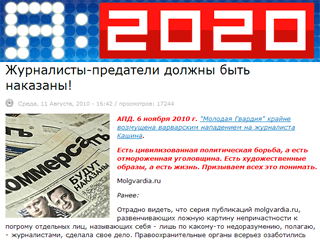 Однако еще недавно молодогвардейцы называли Кашина предателем и призывали наказать журналиста. Автор публикации Владислав Ловицкий подписался как "маргинал-обозреватель" сайта молодогвардейцев.