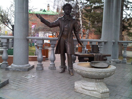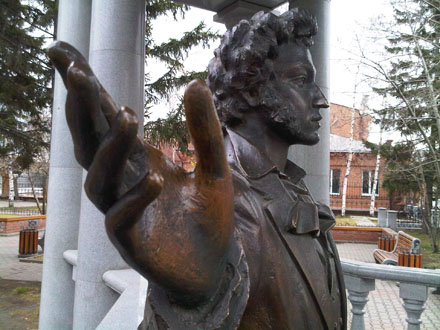 P.S. Материал проиллюстрирован фотографиями памятника Пушкину и не вполне атрибутированной дамы. Красноярск, Проспект Мира. Фото — автора заметки, увы — на мобильник.