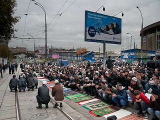По данным ГУВД столицы, в окрестностях московской Соборной мечети в праздновании Курбан-байрама приняли участие 70 тыс. человек.