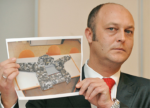 Представитель обвинения Жерар Ярош демонстрирует фотографию улики