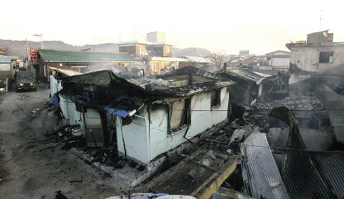 Один из домов на острове Ёнпхёндо, разрушенных в результате артудара со стороны КНДР