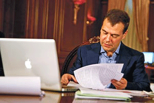 Сам по себе такой вариант выглядит неожиданно, поскольку недавно (картинка иллюстрировала как раз ход подготовки Послания), президент был запечатлен на официальной ИТАР-ТАССовской фотографии с компьютером на переднем плане. Причем, это был макбук.