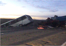 ДТП произошло около 05.35 по московскому времени на 345-м км автотрассы Самара-Волгоград у поселка Орловка. От удара на месте погибли восемь человек, 27 человек получили различные травмы и были госпитализированы в центральную районную больницу. Одна из пострадавших позже скончалась в больнице.