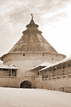 К семи часам утра седьмого декабря 2010 года были завершены основные реставрационные работы на шатре Покровской башни. Удивительно – сейчас, когда величайшему сооружению Псковской крепости возвращен его полный объем, кажется уже, будто и не было 15 лет кричащей пустоты, и крытая огромным шатром башня была в этом месте именно такая всегда, не отдавая ни метра в пространстве. Так бывает тогда, когда сооружение изначально занимает только ему предназначенное место. И утрата гения этого места – это утрата системы координат, а его новое обретение – это возвращение к нормальному миропорядку.