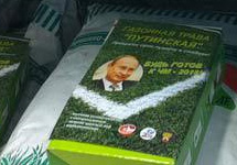 Фотография с травой "Путинской" появилось в блоге журналиста Натальи Радуловой 7 декабря. Этот продукт якобы продается в гипермаркете "Мега-Белая дача". Другие блогеры обратили внимание на то, что к коробке с безымянной газонной травой просто приклеен лист бумаги с фотографией премьера и подписью "Преврати свою лужайку в стадион!".