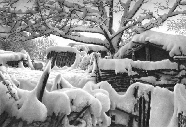 Но, поскольку зима все же - то не портреты обнаженных девушек, а потрясающие КАРАНДАШНЫЕ рисунки Гурама Доленджашвили из серии "Имеретинская зима":