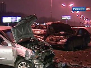 "По предварительным данным, один из автомобилей совершил наезд на препятствие, после чего в него последовательно врезались еще несколько машин", - сказал собеседник агентства.