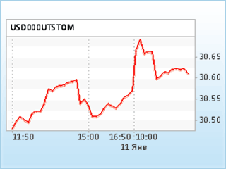 Средневзвешенный курс доллара США к российскому рублю со сроком расчетов "завтра" на торгах единой торговой сессии ММВБ по состоянию на 11:30 по московскому времени, на основе которого происходит процесс курсообразования доллара на следующий день, повысился на 14,83 копейки и составил 30,6252 рубля, сообщает "Финмаркет".