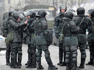 Как передает корреспондент "Интерфакса", в настоящий момент на площадь прибыли около 40 автобусов и грузовиков с военнослужащими внутренних войск, сотрудниками милиции и ОМОН.