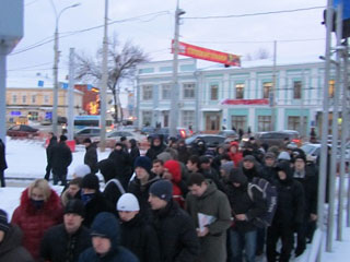 "В течение 25 минут 30 молодых людей, имея при себе атрибутику футбольного клуба "Шинник" и плакат с портретом болельщика футбольного клуба "Спартак" Егора Свиридова, провели несогласованное с органами власти шествие по маршруту от улицы Андропова до Первомайской улицы", - сообщил "Интерфакс" в воскресенье источник в правоохранительных органах. Он отметил, что у стены Знаменской башни молодые люди положили цветы и зажгли поминальные свечи.