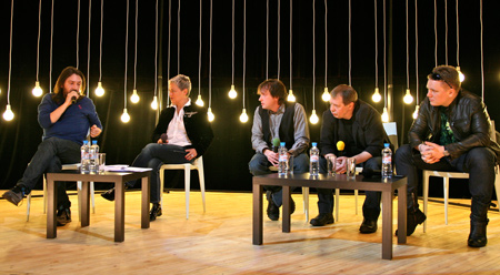 Сергей Шнуров: Во-первых, я вообще не понимаю, что такое гражданское общество. Во-вторых, я не до конца понимаю, что я тут делаю. Потому что перед аудиторией я обычно выступаю в другом костюме. Костюм я оставил дома. Кеды, они просто прилипли к носкам. Потом, я обычно на людях трезвым не появляюсь. Поэтому сегодня абсолютно какое-то такое новое у меня качество и ощущение, сердце колотится. Задавайте вопросы об обществе и не об обществе. Мне кажется, как-то не нужно сужать круг нашей беседы.