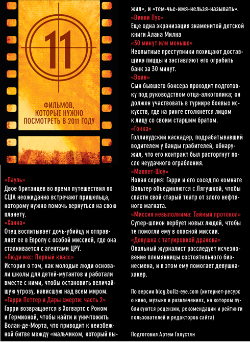 Ежегодный американский фестиваль независимого кино «Санданс» (Sundance Film Festival) проходил в этом году в Парк-Сити, штат Юта, 27-й раз. Организатором фестиваля является созданный 30 лет назад «Институт Санданс», детище популярного актера, режиссера и продюсера Роберта Редфорда. Задача Института – открывать новые кинодарования и помогать их творческому росту. «Санданс» дал дорогу в большое искусство многим знаменитостям: Квентину Тарантино, Полу Андерсону, Стивену Содербергу, Джеймсу Вану, Джиму Джармушу. Открытием «Санданс» стали такие фильмы, как «Эль Мариачи» (1992) Роберта Родригеса, «Пила: Игра на выживание» (2004) Джеймса Вана, «Ведьма из Блэр: Курсовая с того света», (1999) Дэниела Мирика и Эдуардо Санчеса, «Клерки» (1993) Кевина Смита. Лучшим независимым американским фильмом 2011 года признана картина Дрейка Доремуса «Как безумный».