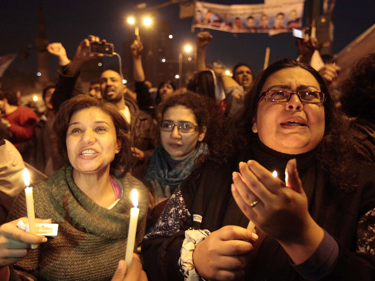 Министр обороны Хуссейн Тантави в пятницу вечером приветствовал десятки тысяч египтян, собравшихся перед президентским дворцом в Каире и празднующих известие об отставке президента Хосни Мубарака.