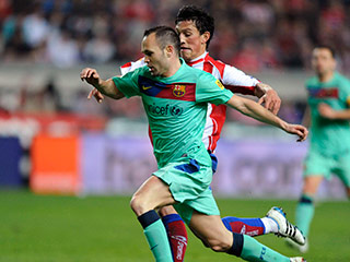 Счет голам открыли хозяева: на 16-й минуте защитники гостей не уделили должного внимания Давиду Барралю. "Барселоне" удалось отыграться лишь за десять минут до финального свистка: Давид Вилья, воспользовавшись пасом Лионеля Месси, поразил ворота хозяев.