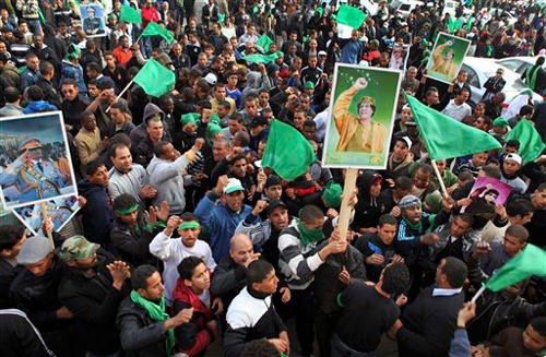 Между тем, накануне был организован автопробег и марш в поддержку главы государства. Митинги сторонников действующего режима прошли в Бенгази, Триполи и Сирте, родном городе Каддафи.