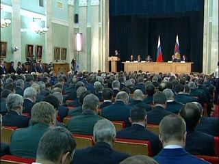 Президент подчеркнул, что сегодняшняя встреча в таком составе - с участием глав регионов, представителей всех ветвей власти, работников прокуратуры и других правоохранительных органов - проводится впервые. Цель этого совещания - "совместно обсудить меры по борьбе с преступностью".