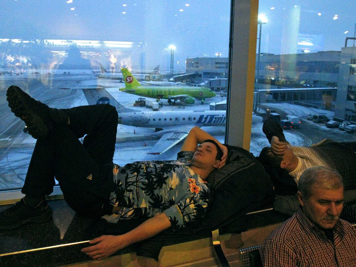 В полдень в пресс-центр "Интерфакса", где собирались выступить юристы, пытался протиснуться мужчина - с ребенком на инвалидной коляске. Пандусов в здании не было, коляску вместе с ребенком пришлось тащить на руках. Игорь Усов рассказал, что они с больным сыном провели в аэропорту перед Новым годом "всего" сутки. Комната матери и ребенка была переполнена детьми, которые, по словам Игоря, были в еще худшем состоянии. Так что маленькому Денису места там не нашлось...