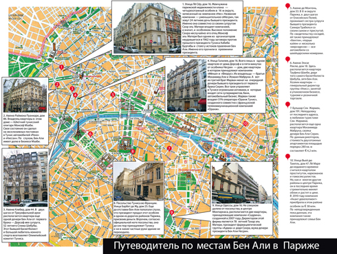 Большая прогулка. Завеса тайны над богатством свергнутого тунисского президента Зин эль-Абидина Бен Али приоткрыта: в одном только Париже его клан, как выяснилось, владеет деесятью объектами недвижимости, общая стоимость которых может достигать €200 млн. В распоряжении The New Times оказался полный список этих особняков и квартир