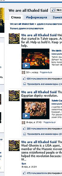 Когда 6 июня 2010 года в Александрии полицейские убили 28-летнего предпринимателя Халида Саида, в социальной сети Facebook в память о нем появилась страница «Мы все — Халид Саид», которую создал и модерировал пользователь под именем El Shaheed. Как выяснилось позже, им оказался Ваиль Гоним — менеджер по маркетингу Google в странах Ближнего Востока и Северной Африки. Он опубликовал фотографии погибшего Саида в Facebook и зарегистрировал аккаунт на YouTube, где выложил видеозапись с рассказами свидетелей убийства. В течение месяца в сообщество «Мы все — Халид Саид» на Facebook вступило более 85 тыс. человек. К концу 2010 года эту страницу уже посещало около полумиллиона пользователей ежедневно, а в декабре появились первые призывы выйти на антиправительственную акцию протеста. Похожая страница на Facebook — Syrian Revolution 2011 — появилась в начале февраля этого года: на ней сирийцы выкладывают видео- и фотосвидетельства об избиениях и пытках людей полицейскими. К этому сообществу уже присоединились более 20 тыс. человек.