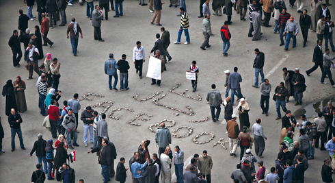 Демонстранты на площади Тахрир, Каир. Facebook стал одним из методов мобилизации людей