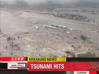 Цунами высотой 10 метров также ударило по морскому порту японского города Сендай в префектуре Мияги. Там имеются многочисленные пострадавшие и разрушения. В городе вода смела целый жилой квартал и накрыла аэропорт Сендай. Взлетно-посадочная полоса длиной более 3 тысяч залита водой, передает японское телевидение.