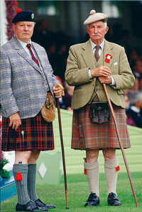 | Шотландцы в традиционной одежде — тартановых килтах и твидовых пиджаках — на национальном фестивале в Бремаре |