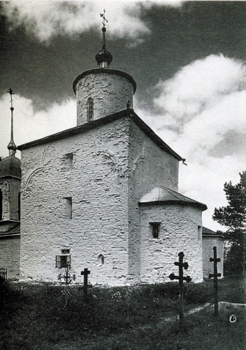 Построили храм через семь лет после ковалевского соседа: «постави владыка Моиси церковь камену во имя святыя Богородица Успения на Волотове». То есть храм поставлен по велению новгородского архиепископа Моисея. Десятью годами позже к нему пристроили северный притвор и западную паперть. В 1363 г. храм расписали. Роспись заказывал уже другой новгородский владыка – Алексей, при этом на стене храма изобразили архиепископа Моисея с моделью храма в руке (достаточно традиционная ктиторская фреска – начиная еще с киевской Софии). Это были потрясающие по своей экспрессии росписи! Кто говорит, что православные фрески слишком скучны и спокойны? Хорошо, что еще в 1910 г. храм обследовал и отснял (в том числе и в цвете) Л.А. Мацулевич. Поэтому мы и сейчас, не дожидаясь окончания реставрации фресок, можем увидеть, какие они были. Достаточно открыть книгу Герольда Вздорнова «Волотово». Мне кажется, что это совсем не хуже знаменитых фресок Феофана Грека, созданных несколько позже.
