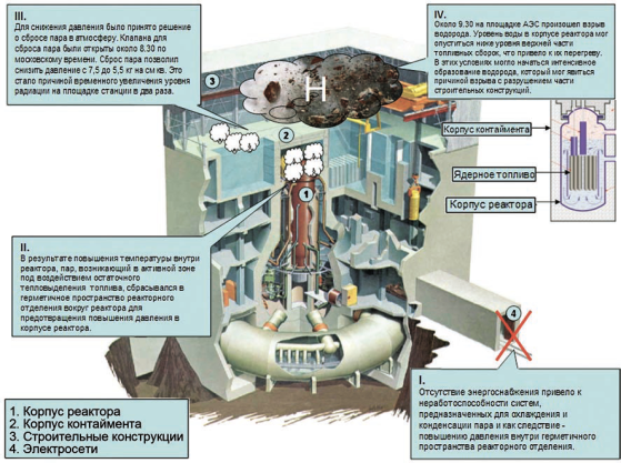 Заглушенный реактор, в котором прекращена цепная реакция, продолжает генерировать большое количество тепла за счет накопленных радиоактивных элементов распада уранового топлива. Сразу после остановки остаточная мощность составляет примерно 6% от тепловой мощности реактора, через сутки она падает примерно до 1% и далее медленно снижается. Поэтому остановленный реактор требует постоянного охлаждения активной зоны. Вода для этого подается насосами аварийных систем, большая часть которых приводится в действие за счет внешних источников электропитания. При отсутствии охлаждения температура в активной зоне поднимается, что приводит сначала к деформации тепловыделяющих элементов, а затем и к их расплавлению. Это грозит попаданием радиоактивных веществ в грунт под зданием реактора. Кроме того, при высокой температуре идет пароциркониевая реакция с образованием водорода, что может привести к взрыву гремучего газа и разрушению самого реактора.