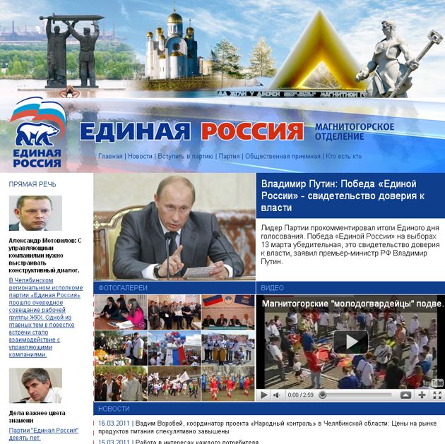 Расширение присутствия партии в информационном пространстве Магнитогорска местные единороссы объясняют требованиями времени и избирателей. Они признаются, что востребованность общественных приемных «ЕР» среди населения и развитие новых форм коммуникации - окончательно склонили руководство местного отделения к разработке и открытию сайта.