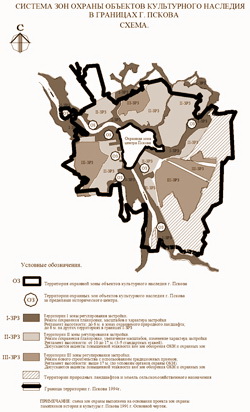 Последний проект был разработан в 1991 г., а утвержден – в 1995 г. Проекты рассматривались и согласовывались на самом высоком уровне – в Госстрое СССР, в министерстве культуры РСФСР, в Центральном Совете ВООПИиК, в областном Собрании депутатов. Зоны охраны Пскова приобретали статус областного закона.