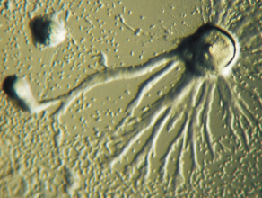 Используя фототропизм слизевика, ученые выманили его ярким светом с бактериального пастбища на бесплодный агар. Там, куда приползали фермеры, начинали расти клебсиеллы, следовательно, слизевики могут их переносить даже на стадии псевдоплазмодия.