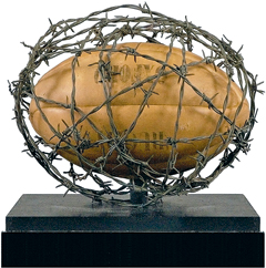 Чудес на выставке много. Утюг с гвоздями, футбольный мяч на штыре, тачка с бархатным сиденьем… Экспонаты, свезенные в Ширн из разых европейских музеев, так непохожи друг на друга, что порой трудно поверить, будто все это часть одного художественного течения. Скульптуры сюрреалистов сильно разнятся и в формах, и в материале, и в способах его обработки. Ассамбляжи**Ассамбляж — произведение из разнородных материалов, например, металла, картона, дерева и ткани. — привычное здесь дело. Кажется, Бретону была важна не столько зачарованность авторов идеями Фрейда и снами и не столько стилистическое единство их работ, сколько сам факт арт-сообщества.