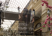 Активисты "Молодежного Яблока" вывесили в ГУМе антипризывной баннер