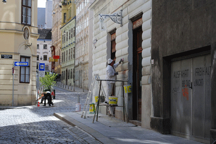 Здесь - фотографии Вены, 6 и 7 апреля. Но, такое дело, когда оказываешься в городе уже примерно седьмой-восьмой раз, то неохота рассуждать о его месте в мировой культуре. Даже его канонические здания фотографировать - скучно. Тут будут просто буквы в городе. И немного картинок, которые как буквы. В каких-то случаях будут даже люди - тоже такие, что как буквы или картинки. И, если понадобится, перевод того, что там написано. Фото, понятно, мои.