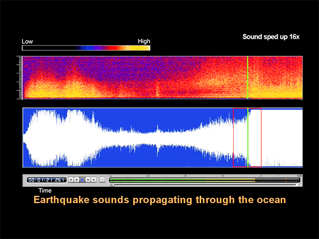 Спустя месяц после японского землетрясения появилась возможность услышать его ужасающий звук. Грозный "голос" ворочающейся земли ученые записали при помощи специального подводного оборудования - так называемого гидрофона. Запись распространила Лаборатория климатических испытаний Тихоокеанской морской зоны в Сиэтле (северо-западный американский штат Вашингтон).