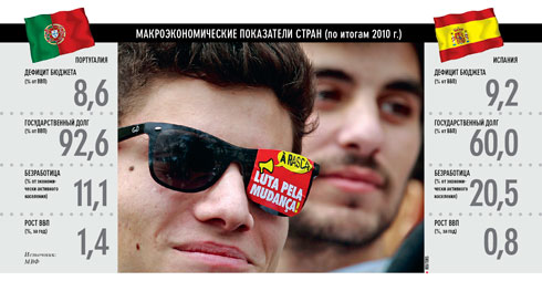 Впрочем, независимые эксперты относятся к этому решению скорее скептически. При объеме помощи в ?75 млрд внешний долг Португалии превысит 120% ВВП, что, по мнению RBS European Economics, превышает психологически допустимую для инвесторов планку. Но главное, отмечают аналитики, подорвана вера в то, что маленькая страна, решившаяся пойти на жесткие бюджетные меры, может сама справиться с кризисом. Теперь многие эксперты опасаются, что «португальский синдром» может охватить и гораздо большую по объему испанскую экономику, многие макроэкономические показатели которой выглядят даже тревожнее, чем у Португалии.