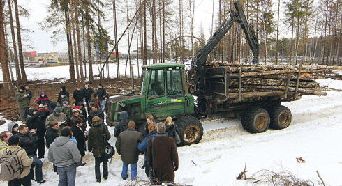 Экологи пытаются блокировать технику, вывозящую срубленные деревья, на месте строительства трассы через Химкинский лес