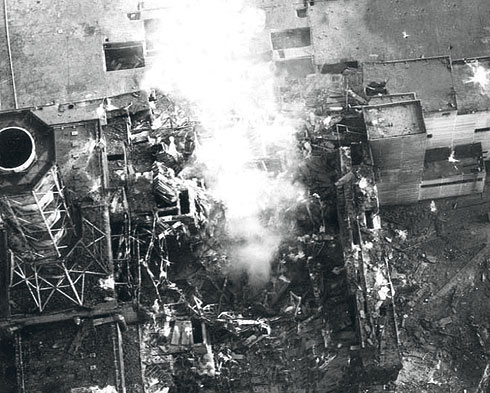 26 апреля 1986 года Там произошел паровой взрыв, он все разворотил. Где-то какую-то роль сыграл взрыв водородный, но я не уверен, так мы до конца не разобрались. Активная зона, корпус, все системы безопасности и защиты — все было уничтожено, здание разрушено. Мы летали над реактором все время, потому что другого способа увидеть, что там происходило, не было. Каждый день смотрели. Вот картиночка — это снято 6 мая (снимок вверху). Когда начала поступать вода, был взрыв, он плиту давлением пара поднял и порвал все эти трубки — там же были тысячи трубок, по которым шла вода, она кипела в этих трубках и их все разорвало, и хлынула вся вода. А здесь был огромной температуры графит, который начал гореть, и кроме того, горел еще цирконий. А внизу… Мы-то думали сначала, что хоть внизу сохранилась такая же плита, три тысячи тонн, а она расколота была, и внизу тоже ничего не было… Мы боялись, что расплавленное топливо соберется где-нибудь одной большой каплей, прожжет последнюю плиту и уйдет в грунтовые воды, — тогда мы, конечно, устроили бы полный кошмар грунтовых вод. Добралось бы до Припяти, потом бы вместе с илом — в Днепр, а по Днепру в Черное море. Вот этого мы избежали. Но мы, правда, много чего делали. Ставили там специальные стенки, делали специальные рвы, такие стены насыпные. Но была еще вторая вещь неприятная — дожди: они смывали грязь сверху, и у нас попадало кое-что в Припять. Но все-таки основное мы удержали: внутри укрытия — его сделали уже в ноябре 1986-го — удержали 96% радиоктивности. На остальной территории станции меньше одного процента. Еще 1,5% разлетелось в окружности от 3 до 80 километров. И еще полтора улетело дальше.