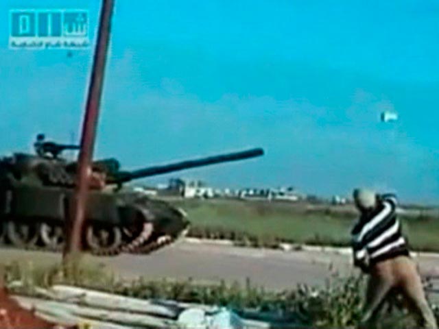О том, что столкновения ведутся не на равных условиях и фактически армия расстреливает безоружных людей, свидетельствуют фотографии, сделанные журналистами. Так, на одном из снимков агентства Reuters запечатлен одетый в гражданскую одежду сириец, который швыряет в сторону идущего по дороге танка огромный булыжник.