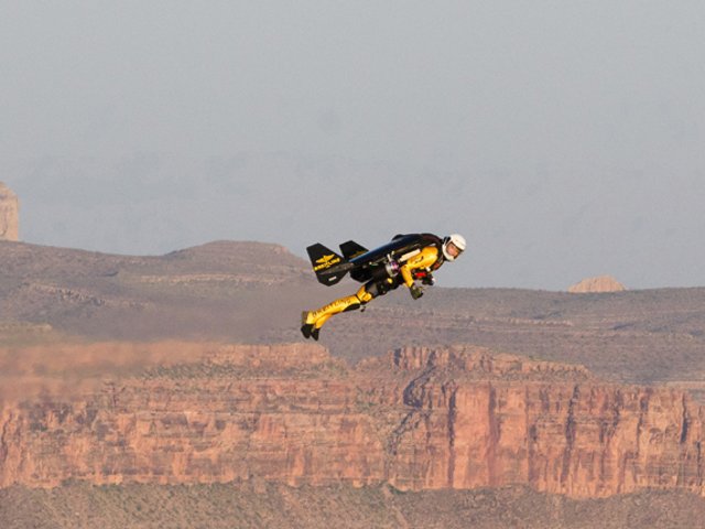 51-летний швейцарец продержался в воздухе более 8 минут и развил скорость до 305 км в час. После того, как в летательном аппарате закончилось топливо, Росси выпустил парашют и совершил мягкую посадку на дне каньона, протяженность которого составляет 446 км, а максимальная глубина - 1,8 тысячи метров.