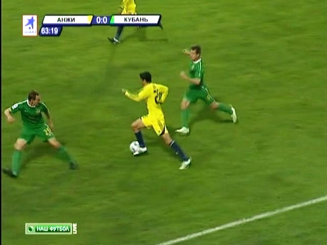 В первом тайме некоторым территориальным преимуществом владел "Анжи", но кубанцы отвечали острым контратаками. В одном из быстрых прорывов Траоре угодил мячом в штангу, также в каркас ворот попал Цораев. У махачкалинцев фирменные штрафные пару раз исполнял Роберто Карлос, но и они к взятию ворот не привели.