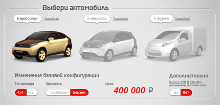 С 16 мая дня компания "Ё-Авто" открыла сайт, на котором каждый желающий через интернет может разместить заявку на приобретение первого российского гибридного автомобиля. "Ё-мобиль" доступен в трех модификациях - микровэн, кроссовер, фургон. Цена в зависимости от комплектации и модели варьируется от 360 до 450 тысяч рублей.
