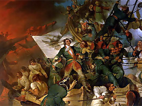Что касается средств борьбы наморе, то Петр решил строить галеры по образцу одной из оных, присланной вАрхангельск в разобранном виде от амстердамского бургомистра Витцена – давнегопетровского контрагента. Галера с принадлежностями пришла в Архангельск ещелетом, в конце года ее отправили в Преображенское, туда же стали отовсюдусобирать мастеров, русских и иностранных. Интереснее решилось дело сорганизацией командования в предстоящем походе (указ о котором был официальнообъявлен в среду 27 ноября (ст. ст.)). Поняв, что простая совокупностьспециалистов еще не гарантирует успеха, молодой царь, разумеется, ударился впротивную крайность, решив сосредоточить все оперативные рычаги вообще всобственных руках. Ради этого верховными командирами были назначены люди вданном качестве довольно странные. Так, главнокомандующим был определен бояринА. С. Шеин – правнук того самого боярина Шеина, что сперва сдал Смоленскполякам в Смуту, а после, уже в тридцатые годы безуспешно этот же город осаждал– вплоть до позорной сдачи армии на милость польского короля Владислава.Алексей Семенович родился в 1652 г. (а не в 1662, как везде почему-то пишут), был оченьзнатным (клан Морозовых) и крайне богатым человеком. Но, вот, боевого опытаэтот – в скором времени первый российский генералиссимус – практически не имел.Аналогичным образом обстояло дело и с руководством "флота": здесьглавноначальствовал Франц Лефорт, известный швейцарский морской волк.Вице-адмиралом при нем был столь же опытный моряк, хоть и венецианец –полковник Лима, а третьем номером в команде, шаут-бейнахтом, т.е.контр-адмиралом, назначили французского полковника же – Бальтазара де Лозьера:он тоже не имел опыта мореплавания, хоть и был, так сказать, "авантюристомширокого профиля" – в Россию де Лозьер приехал в 1688 г. вообще из Персии…Матросами же на этом флоте служили все те же младшие чины Преображенского иСеменовского потешных полков – в понимании Петра, дружина универсальныхисполнителей царских затей. (Отметим в скобках, что, поместив своего другаЛефорта на галеру, царь в известном смысле физически облегчил тому жизнь – ещена прошлогоднем обратном пути из-под Азова Франц крайне неудачно упал с лошади,получив какое-то очень серьезное повреждение внутренних органов. Именно оно сведетженевца в могилу в 1699 г.,тогда же, в 1696-м, он лишь испытывал, как сейчас бы сказали, "некоторые вынужденныеограничения двигательной активности", что для должности фаворита пригиперактивном монархе довольно мучительно.)