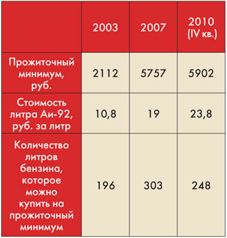 «Новая» решила сопоставить цены на бензин за 2003, 2007 и 2010 годы, предоставленные Росстатом, с прожиточным минимумом и подсчитать, сколько литров Аи-92 автомобилисты могли купить на эти деньги раньше, а сколько сейчас.