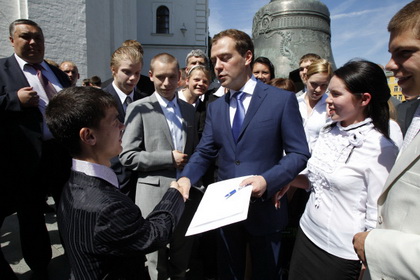Вот Медведев требует повысить на пятьдесят процентов зарплату медицинским работникам школ, яслей и детсадов. Путин на следующий же день обещает уже с первого сентября увеличить жалование учителям на тридцать процентов. Медведев дает указание подготовить предложения о том, чтобы военкоматы не гребли в армию выпускников школ, которым исполнилось 18 лет, прямо с выпускного вечера, а позволили бы поступать в вузы. Путин в ответ гарантирует, что, вопреки планам реформы образования, все предметы школьной программы останутся бесплатными. Медведев, правда, оставил без ответа премьерскую инициативу о радикальном улучшении дорог. Видимо президент, даже в своем безбрежном оптимизме, осознает, что решить проблему с дураками ему не под силу.