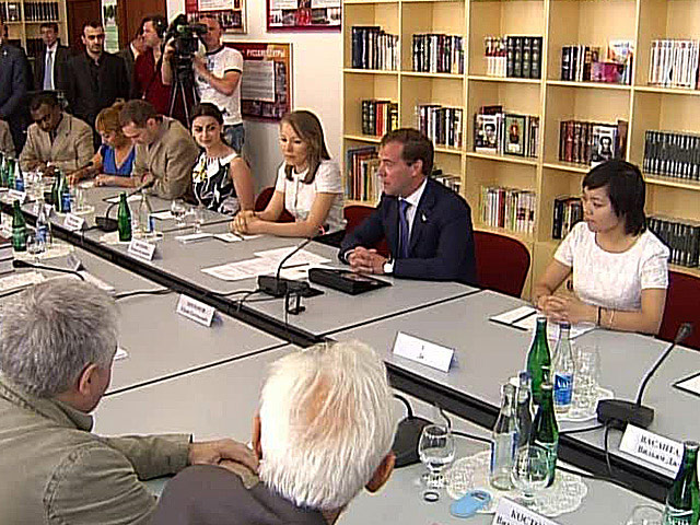 Здесь же в институте состоялась беседа президента с представителями научно-образовательного сообщества, фонда "Русский мир" и объединений российских лингвистов, а также с молодыми русистами и специалистами по популяризации русского языка в интернете.