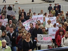 Собравшиеся потребовали от губернатора Алтайского края Александра Карлина, которого приглашали на митинг, взять на себя моральную ответственность за решение проблем участников долевого строительства жилья.