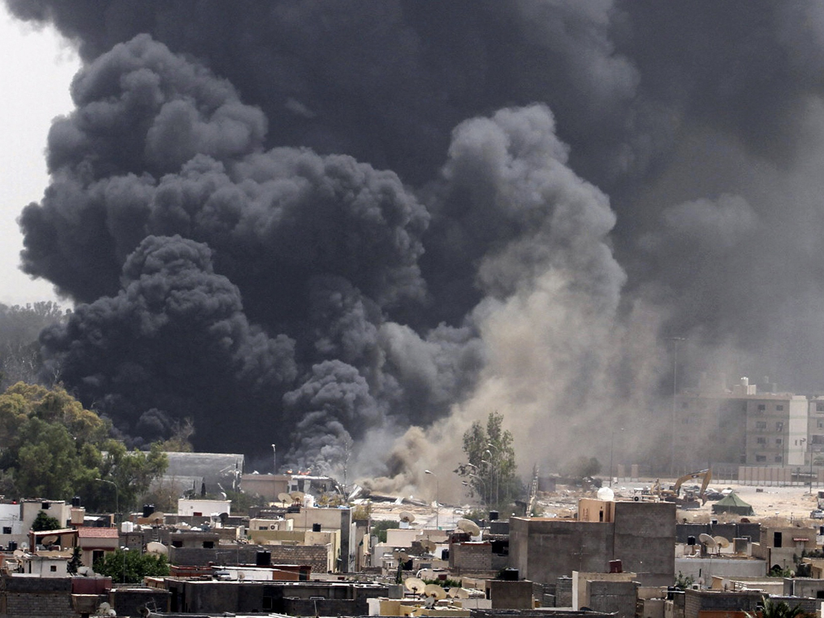 По меньшей мере шесть мощных взрывов были слышны сегодня в Триполи