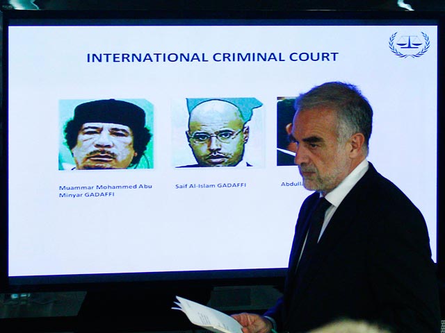 Запрос о выдаче этих ордеров на арест был направлен 16 мая на рассмотрение МУС генпрокурором Луисом Морено-Окампо. По его мнению, эти три гражданина Ливии несут ответственность за "нападения на мирных ливийцев". Впрочем, западные телеканалы передают немало свидетельств "миролюбия" этих граждан, которые охотно демонстрируют оружие, взятое ими на разграбленных военных складах, и подвешенных вниз головой солдат правительственных войск, попавших в их руки. Видеосюжеты, демонстрирующие "миролюбие" противников Каддафи, собраны, например, на канале maramusorg.