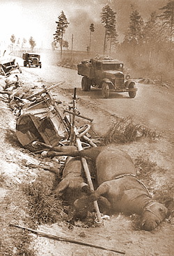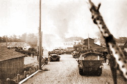 Было видно, что военные, сидевшие в легковушке, давали какие–то указания. Мотоциклисты помчались в город. Очень быстро они вернулись, и вся колонна двинулась в город. Проезжали грузовики с солдатами, грузовики, тащившие пушки, проследовало несколько танков с крестами на башнях. Проезжали какие – то странные грузовики, но вместо задних колес у них были гусеницы. Все это я воспринимал по-детски – мне было просто интересно. Но взрослые вдруг стали спешно уходить с места наблюдения. Очевидно, почувствовали трагическую суть увиденного. Город занимали враги, город захвачен в плен, а вместе с ним и все мы».